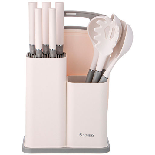 Набор из 12пр: 5 ножей,доска,подст.,половник,ложка,лопатка,шумовка,ложка для спагетти 671-213