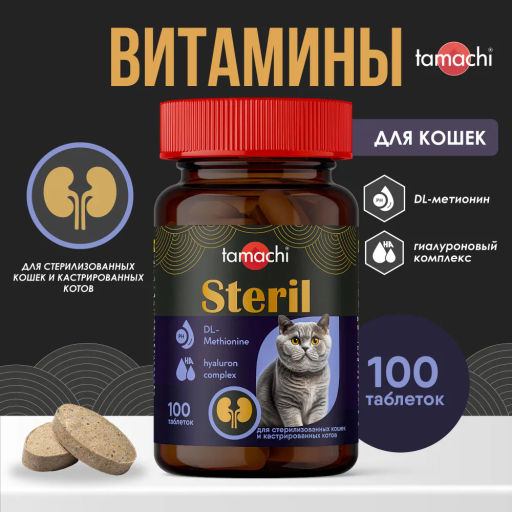 Тамачи Стерил д/котов и кошек витамины 100таб., T704, 9шт кор, Неотерика