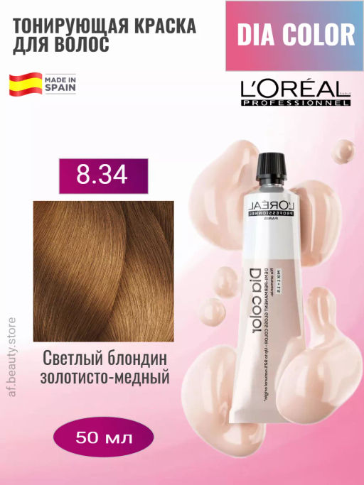 Dia color 8.34 Светлый блондин золотисто-медный краска-блеск без аммиака, 60 мл Loreal