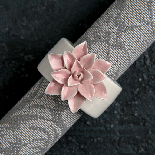 Цена за 6 шт. Кольцо керамическое для салфеток Цветок, 5,54,56,5 см, цвет розовый