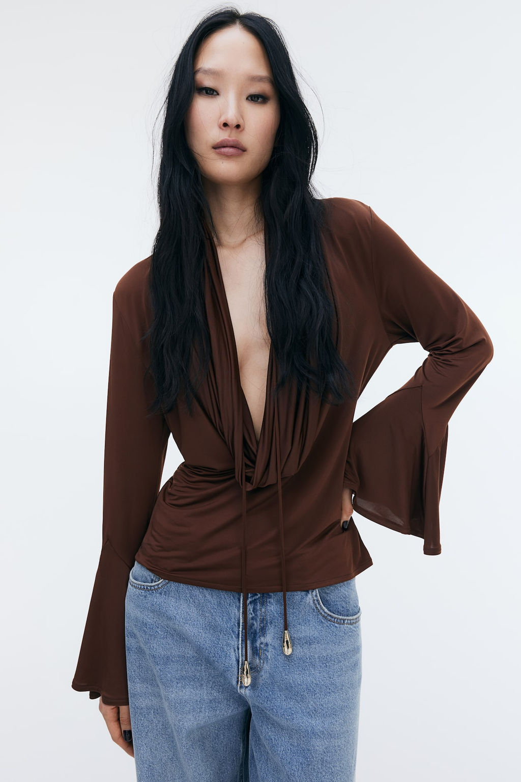 Top de punto con escote drapeado