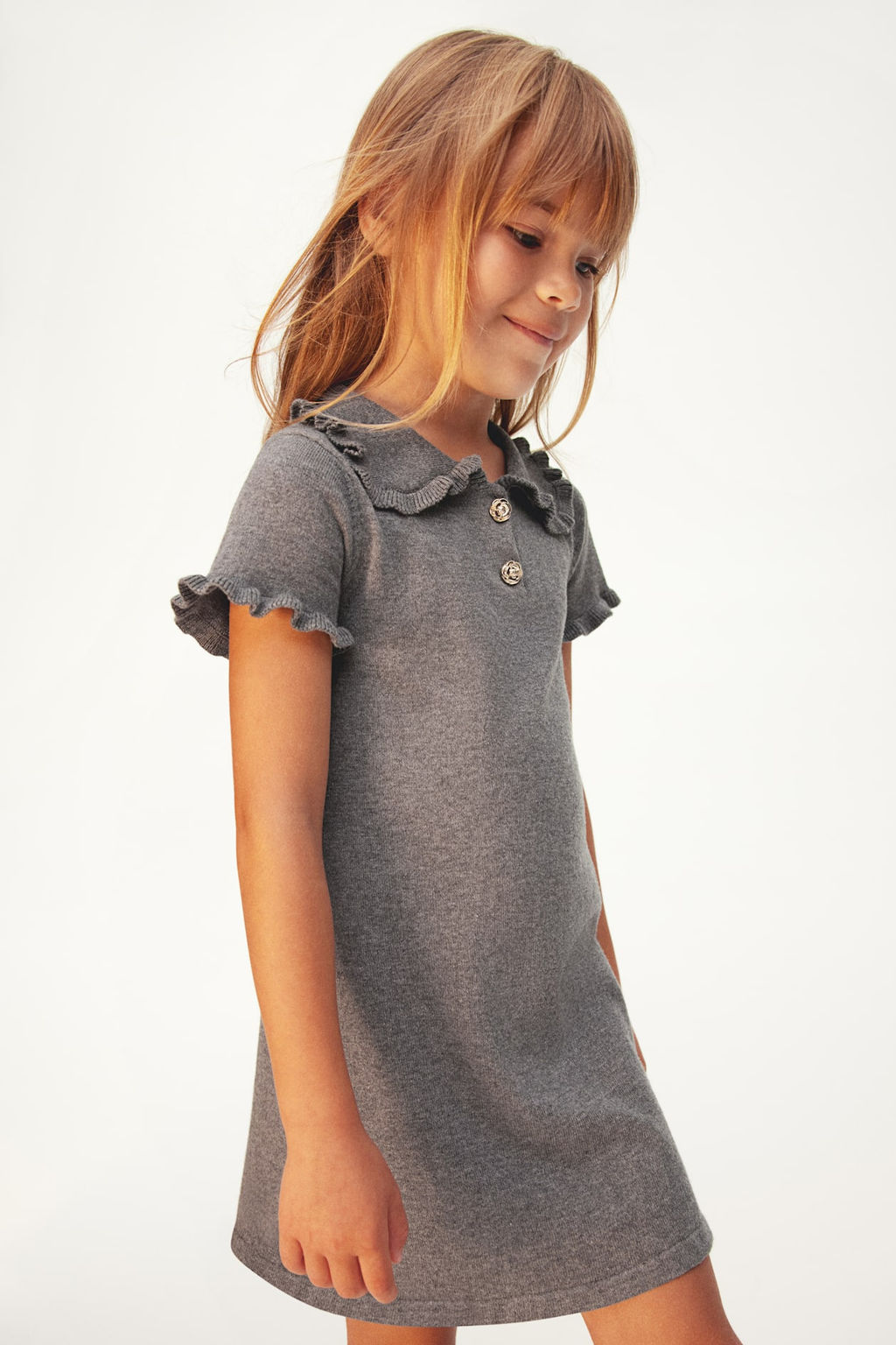 Vestido de punto fino con ribetes de volante