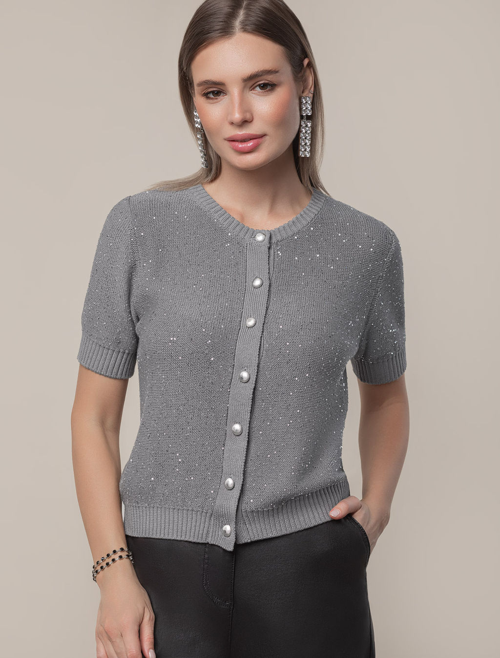 VILATTE / Жакет из хлопковой пряжи с пайетками