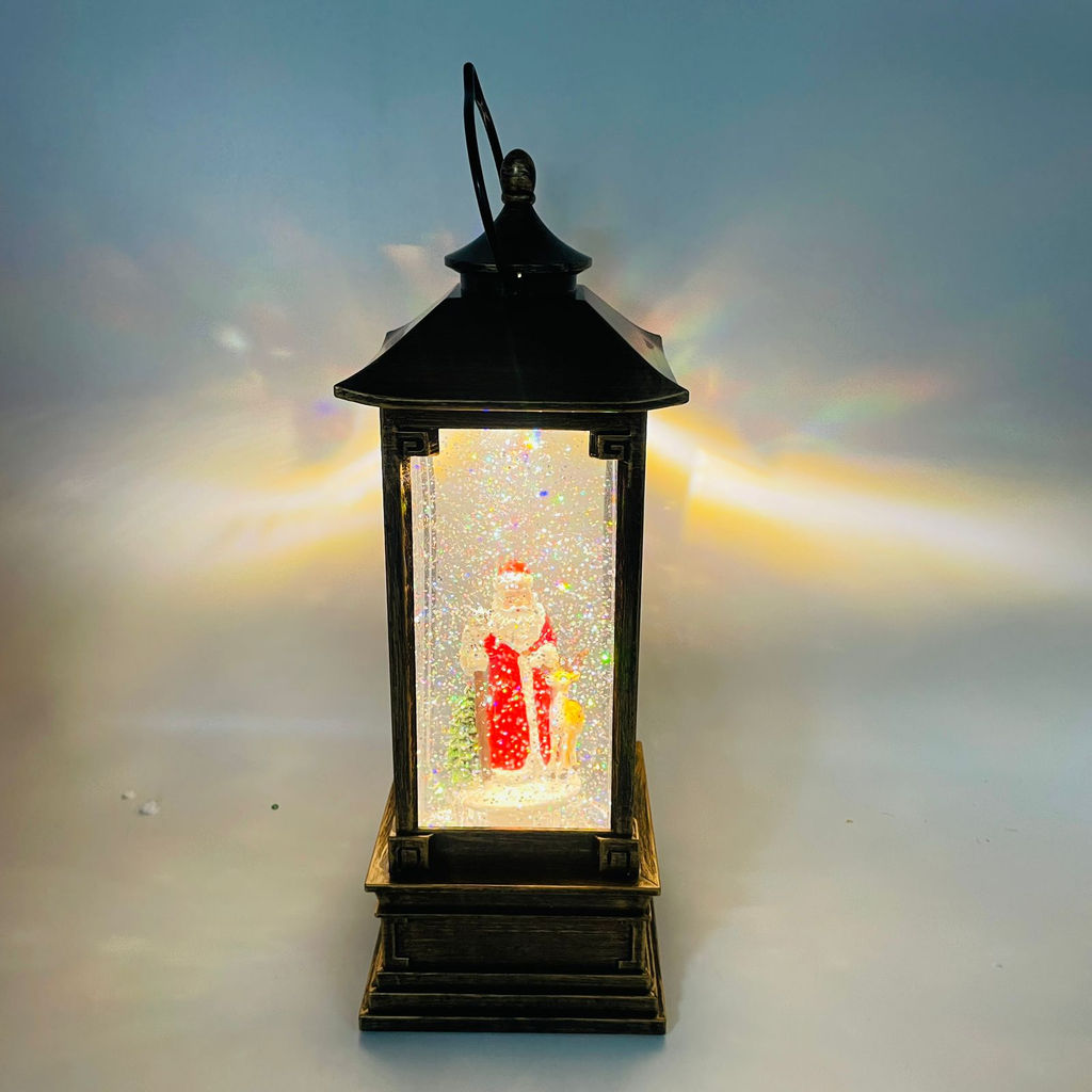 Новогодний декор Фонарь стекло - Дед мороз с оленем 30 см (арт. 8336RA)