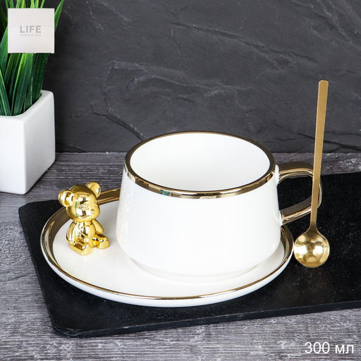 Чайный набор 300 мл 3 предмета с ложкой Мишка / JY3539 /уп 48/