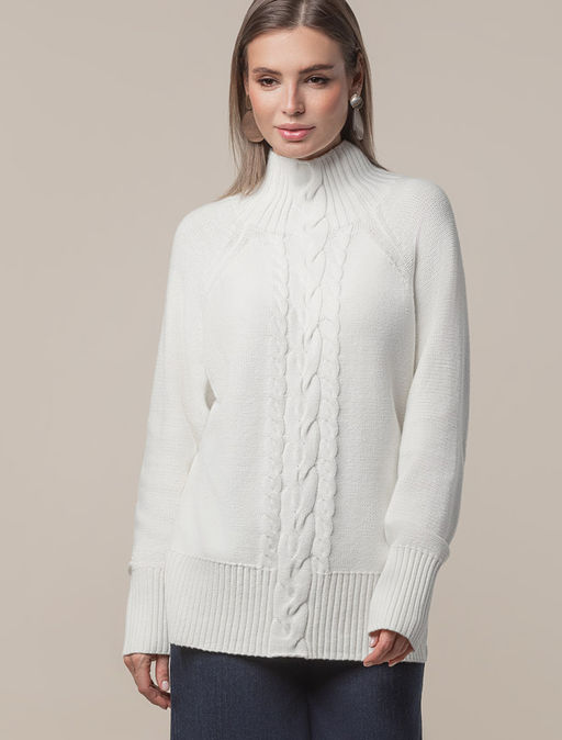 Свитер фактурной вязки с узором косы