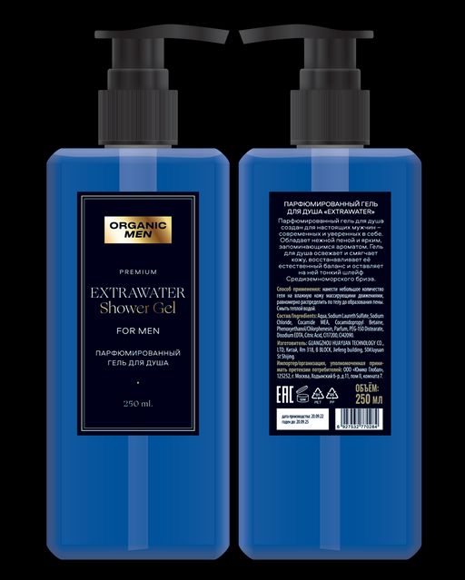 Organic Men Парфюмированный Гель для душа "EXTRAWATER" 250мл. 6