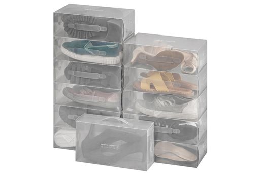 Набор 12 коробок для хранения женской обуви 30*18*10 см "Прозрачные" складные, с ручкой, дымчатые