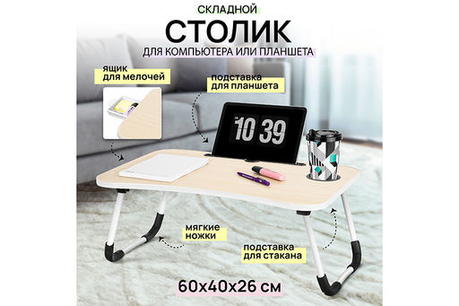 Складной столик для компьютера 60*40*26 см "Белый"