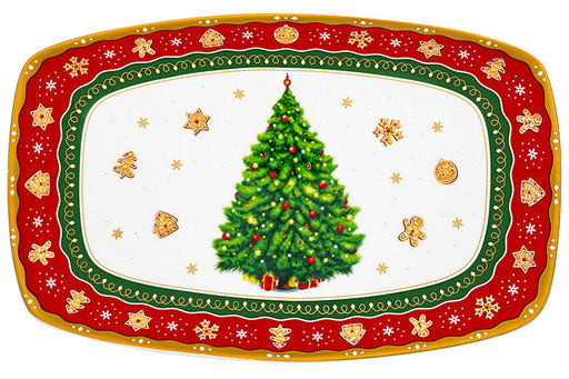 Блюдо 30*19*2,5 см "Новогодняя елка" квадратное, красный узор NEW BONE CHINA