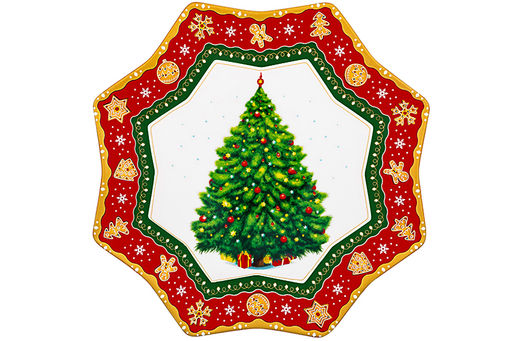Блюдо 27*27*2 см "Новогодняя елка" красный узор, звезда NEW BONE CHINA