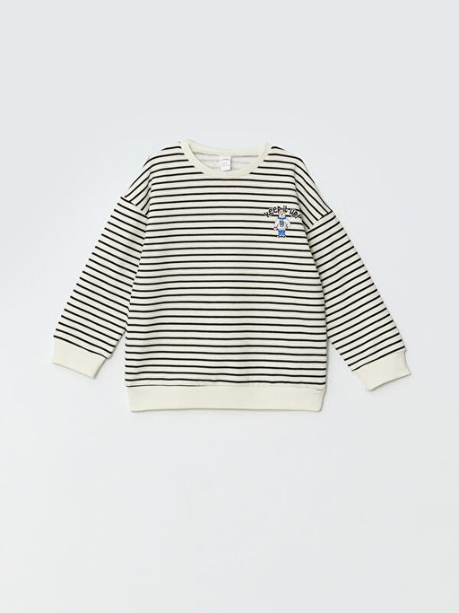 Bisiklet Yaka ?izgili Erkek ?ocuk Kal?n Sweatshirt