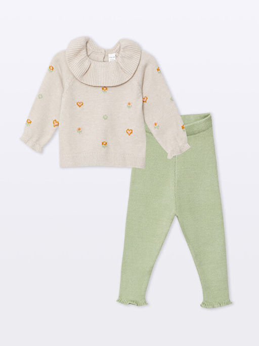 Bebe Yaka Desenli K?z Bebek Bluz ve Tayt 2li