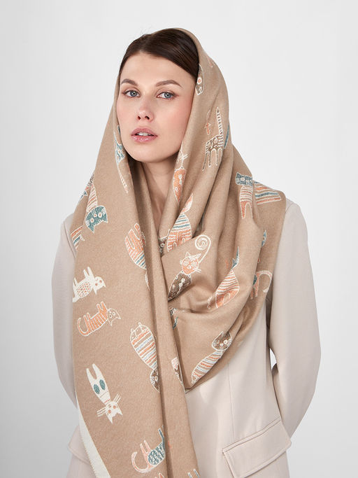 в составе ШЕРСТЬ и КАШЕМИР Большой, мягкий, теплый однотонный двусторонний палантин.