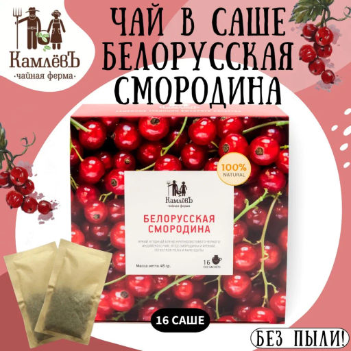 Камлёвъ Черный чай "Белорусская смородина", 48 г (16 саше)