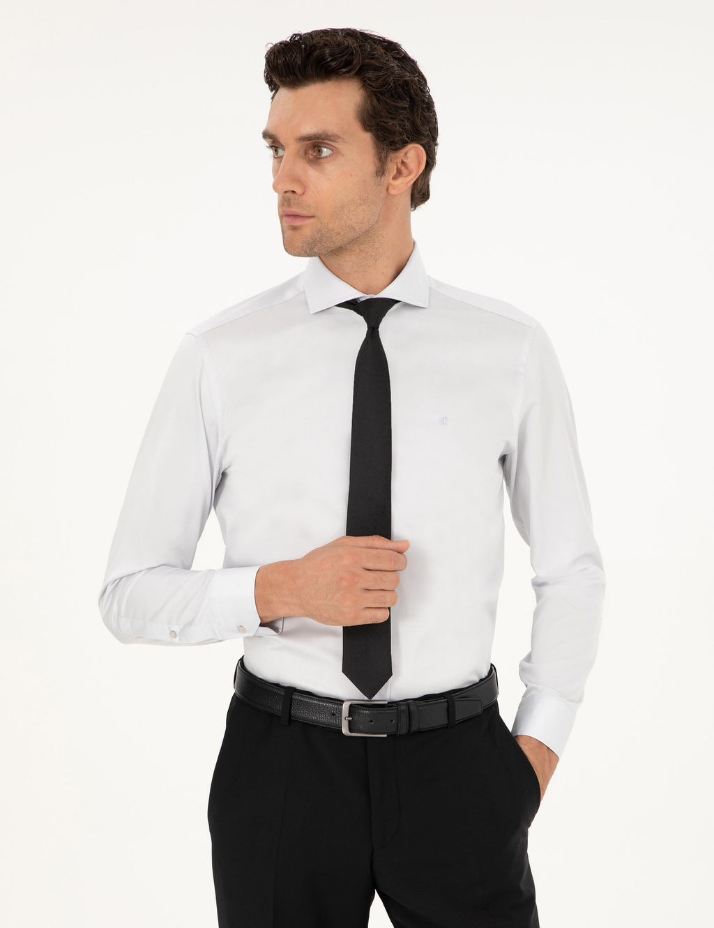 Светло-серая классическая рубашка приталенного кроя с итальянским воротником