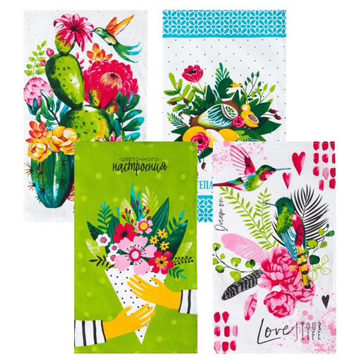 Набор полотенец кух. "Доляна"Цветочного настроения 35х60см-4шт, 100% хл 100%хл