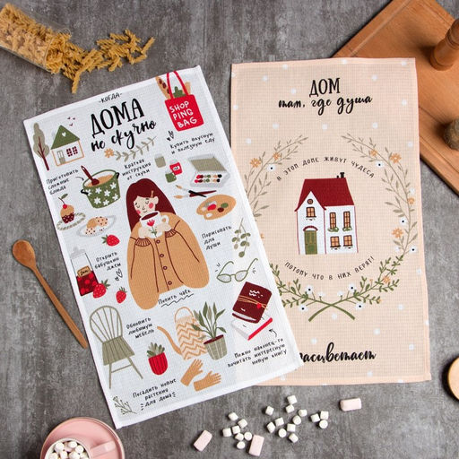 Набор кухонных полотенец Доляна Дома не скучно 35х60см-2шт, 100% хлопок