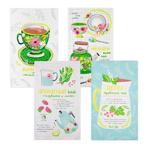 Набор кухонных полотенец Доляна Ароматный чай, 35х60см-4 шт, 100% хлопок, вафля 160 г/м2