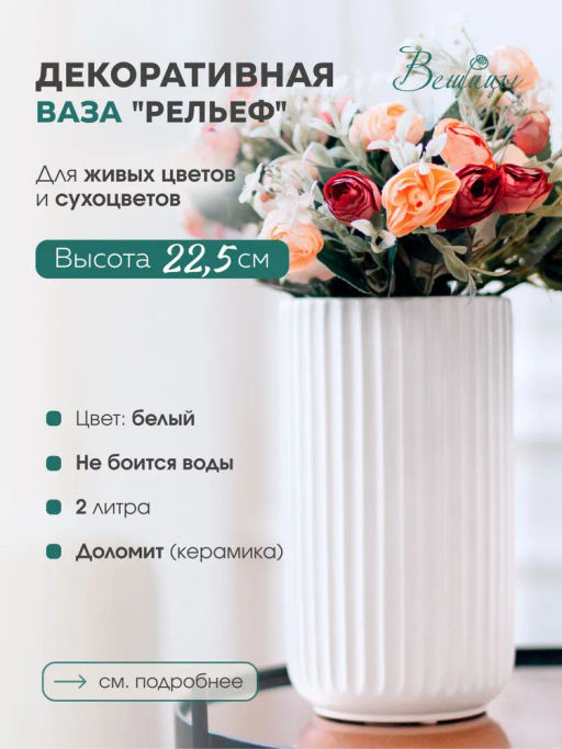 Декоративная ваза Рельеф, 9,5х9,5х18 см, белый Cha7-M