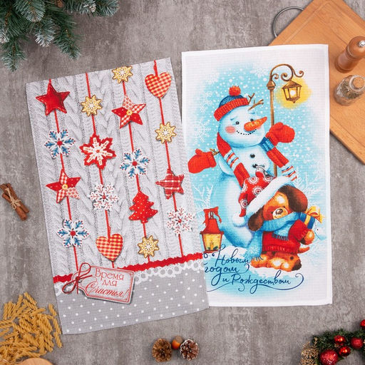 Набор кухонных полотенец Доляна Время для счастья 35х60см-2шт, 100% хлопок