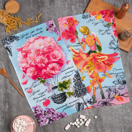 Набор кухонных полотенец Доляна Самая очаровательная 35х60 см - 2шт, 100% хл
