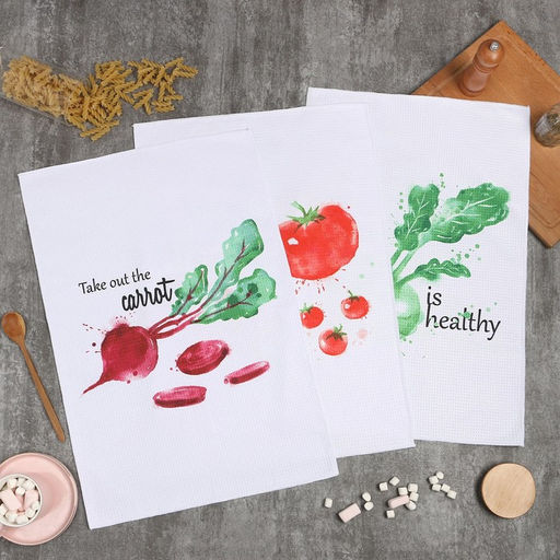Набор кухонных полотенец Доляна "Овощи" 40х603см, 3 шт, 100% пэ