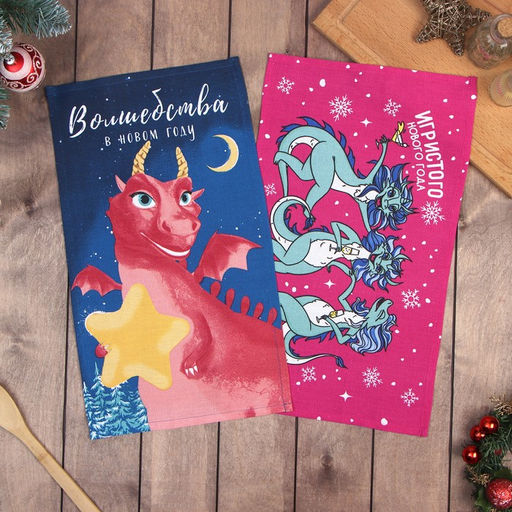 Набор полотенец Доляна "Игристого нового года" 28х46 см - 2 шт, 100% хл, рогожка 164 г/м2
