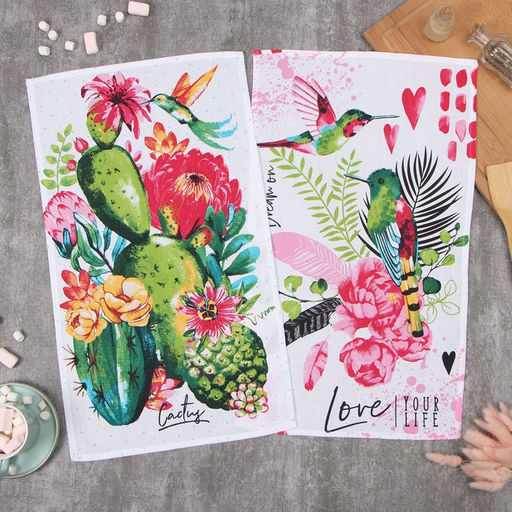Набор полотенец кух. Доляна "Счастливые птички" 35х60см-2шт, 100% хл 100%хл