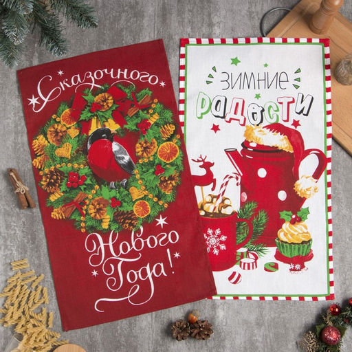 Набор кухонных полотенец Доляна Зимние радости 35х60см-2шт, 100% хлопок