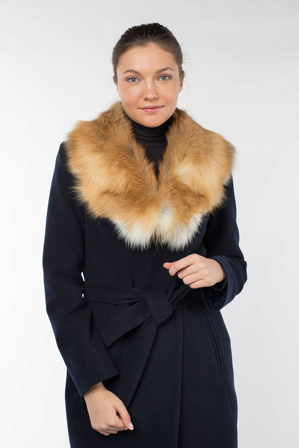 Мех натуральный (лиса) Пальто утепленное Холлофайбер 300