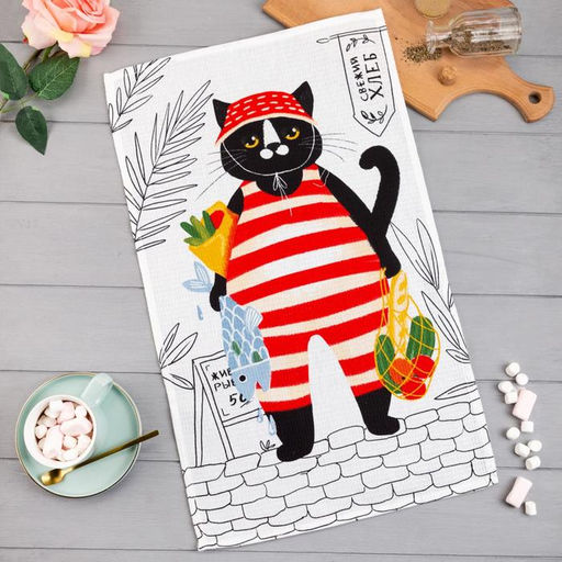 Полотенце кухонное Доляна Кот 35х60 см, 100% хл, 160г/м2