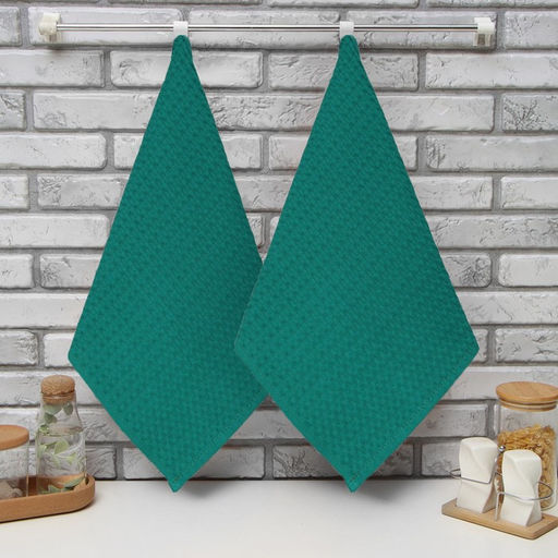 Набор кухонных полотенец Доляна, цвет зелёный, 35х60см-2шт, 100% хл, вафля, 220 гр/м2