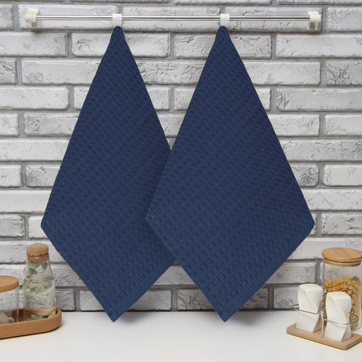 Набор Кухонных полотенец Доляна, цвет индиго, 35х60см-2шт, 100% хлопок, вафля, 220 гр/м2