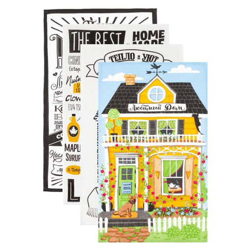 Набор кухонных полотенец Доляна Любимый дом, 35х60см-4шт, 100% хлопок