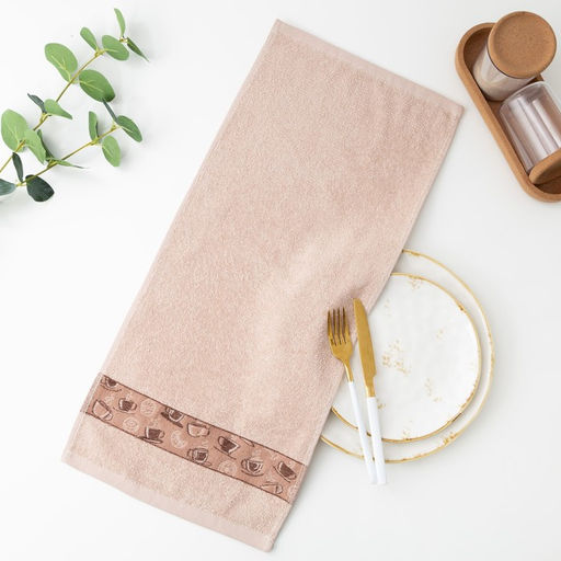 Полотенце 30х60 см, Чашки, бежевый МИКС, 340 гр/м, махра, хлопок