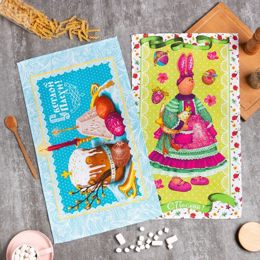Набор кухонных полотенец Доляна Светлой пасхи 35х60см-2 шт