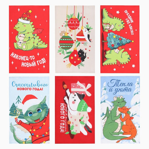 Набор полотенец Доляна "Праздник уже близко" 28х46 см - 6 шт, 100% хл, рогожка 164 г/м2