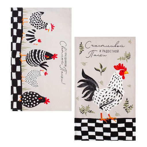 Набор кухонных полотенец Доляна С праздником Светлой Пасхи, 35х60см-2 шт, 100% хлопок, вафля 160 г/