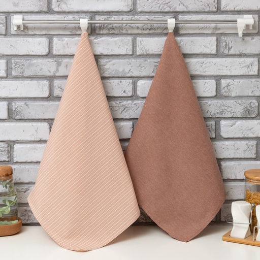 Набор кухонных полотенец Доляна Полосы, 40х70см- 2шт, бежевый, 50%п/э, 50%хл