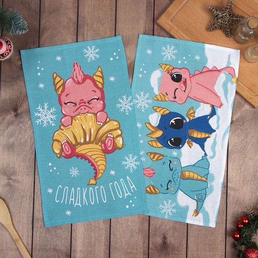 Набор полотенец Доляна "Сладкого года" 28х46 см - 2 шт, 100% хл, рогожка 164 г/м2