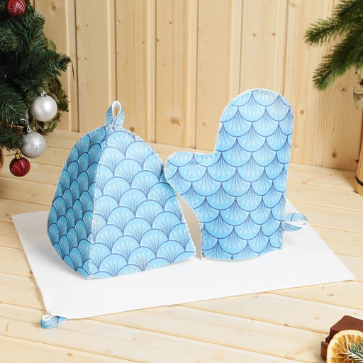 Набор для бани с принтом "Водяной дракон": шапка, рукавица, коврик, голубой, р. 41-43