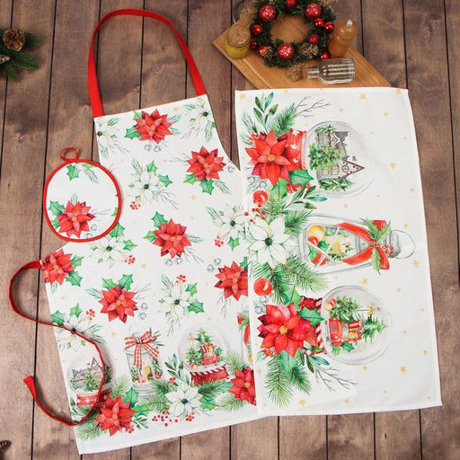 Набор подарочный "Этель" Christmas red flowers, фартук, полотенце, прихватка