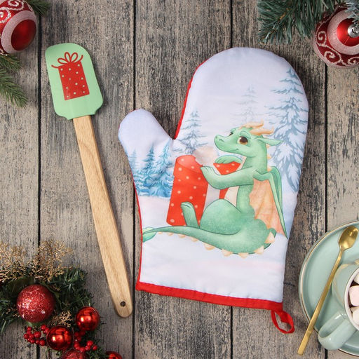 Набор подарочный Доляна "Подарок" : варежка-прихватка, лопатка силикон