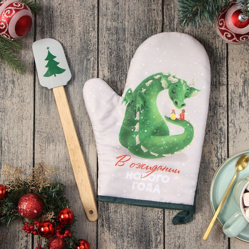 Набор подарочный Доляна "В ожидании НГ" : варежка-прихватка, лопатка силикон