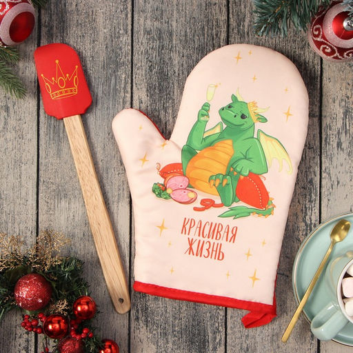 Набор подарочный Доляна "Красивая жизнь" : варежка-прихватка, лопатка силикон