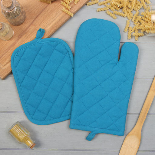 Набор кухонный Этель, цв. синий: варежка-прихватка 18х26 см, прихватка 18х21 см