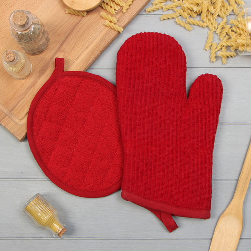 Комплектующие набор кухонный Этель, цвет красный: варежка 33х17 см, прихватка 24х19 см