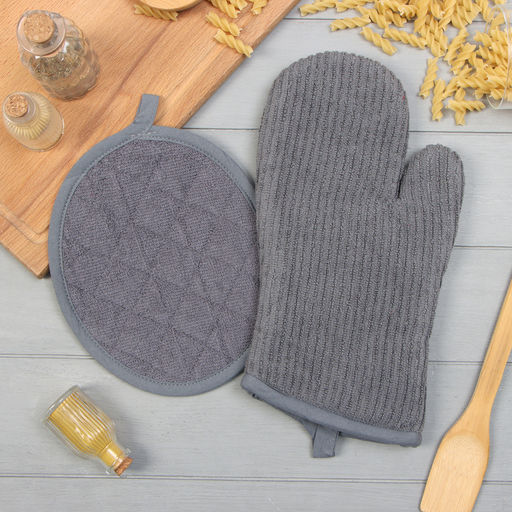 Набор кухонный Этель, цвет серый: варежка 33х17 см, прихватка 24х19 см, хлопок, махра