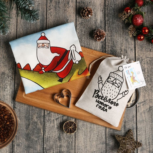 Набор в мешочке Этель "Весёлого года": полотенце 40х73 см, формочки для запекания - 3 шт.